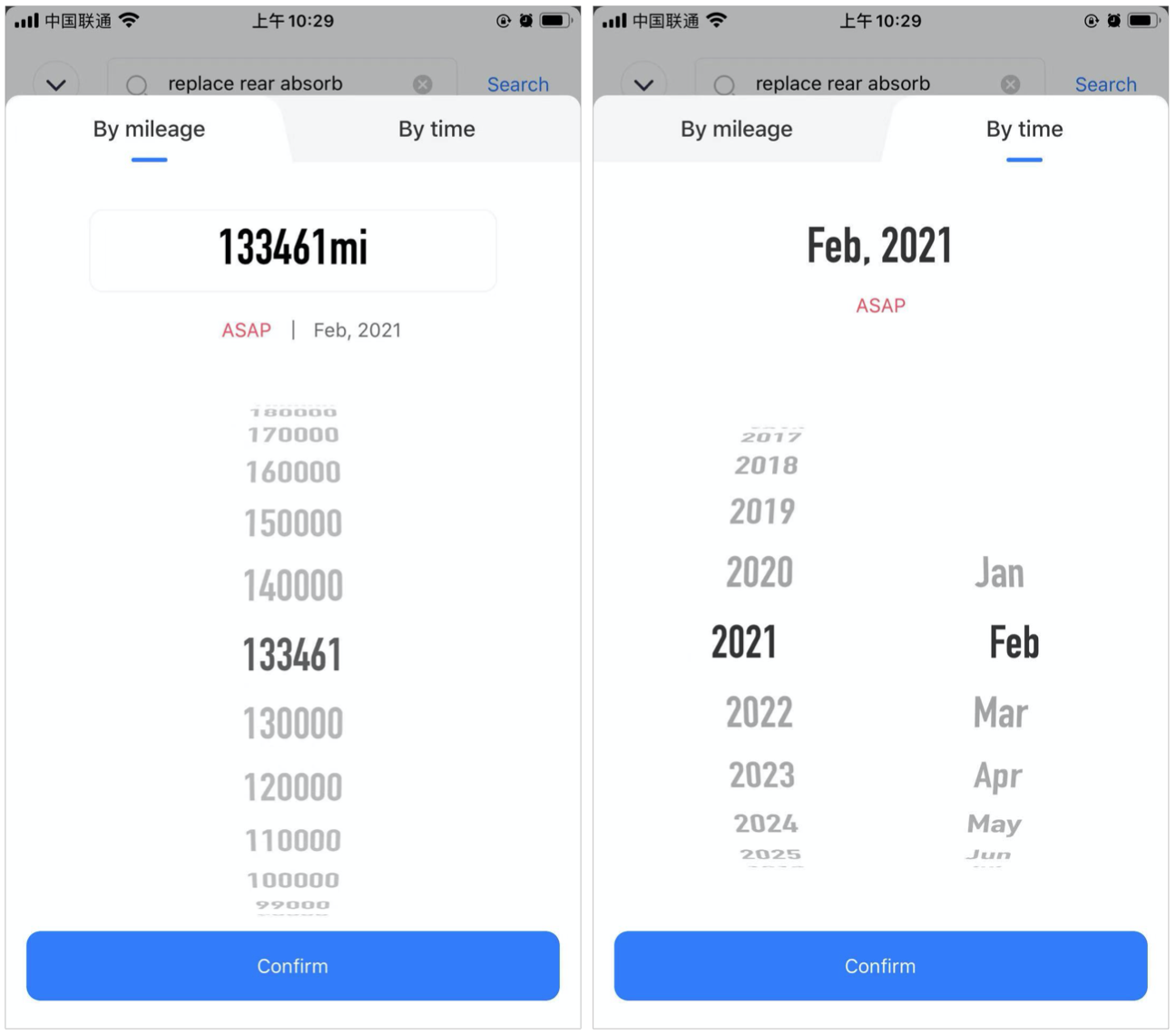 The technician modifies the total mileage/date of maintenance Period expiration in the pop-up window. Then he clicks "Confirm".