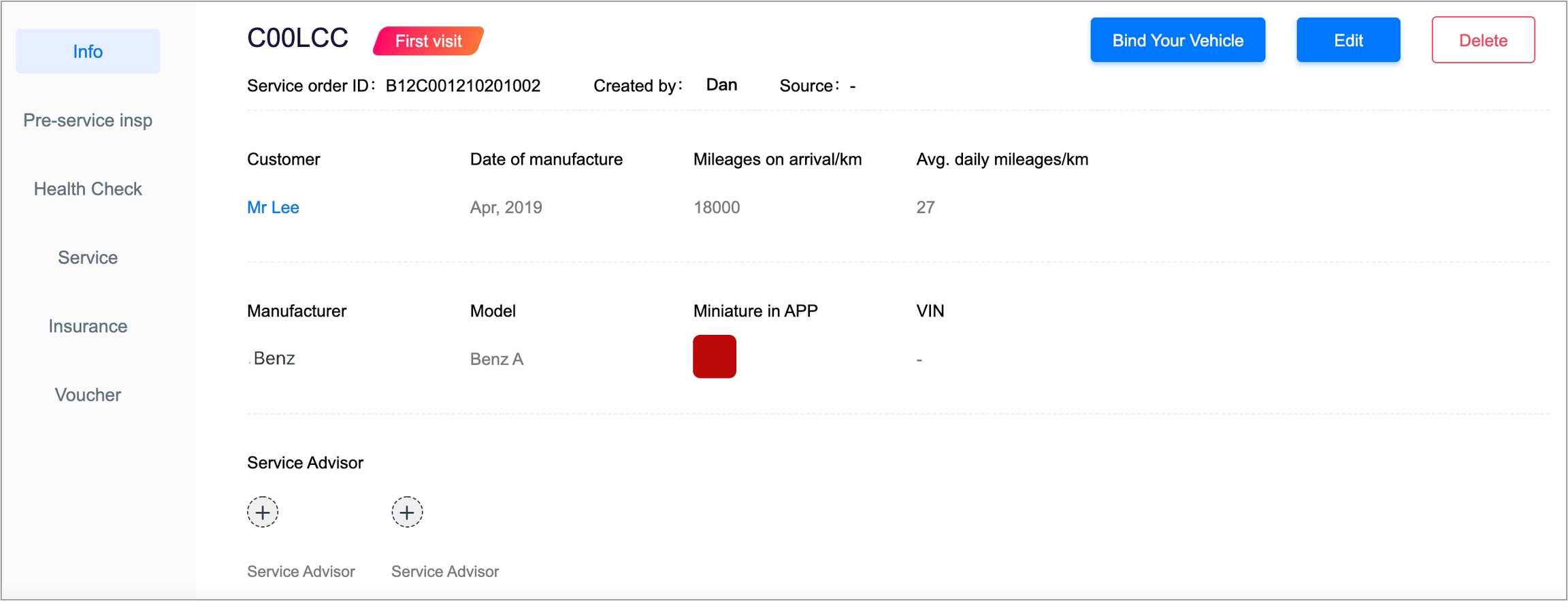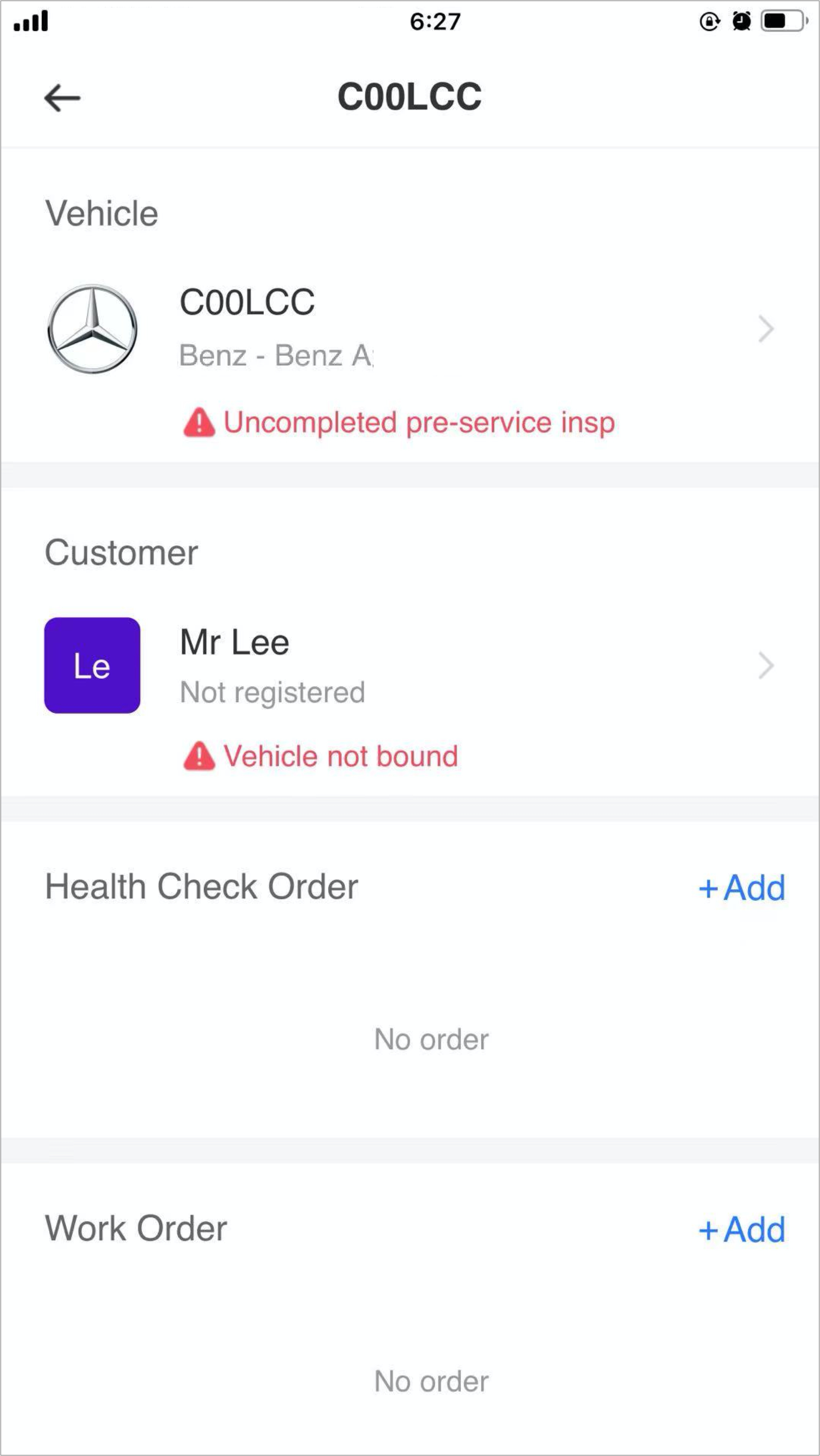A Service Order is an order used for checking in vehicles. Generally speaking, when a vehicle arrives at the workshop, the technician or staff will create a Service Order to check in the vehicle.