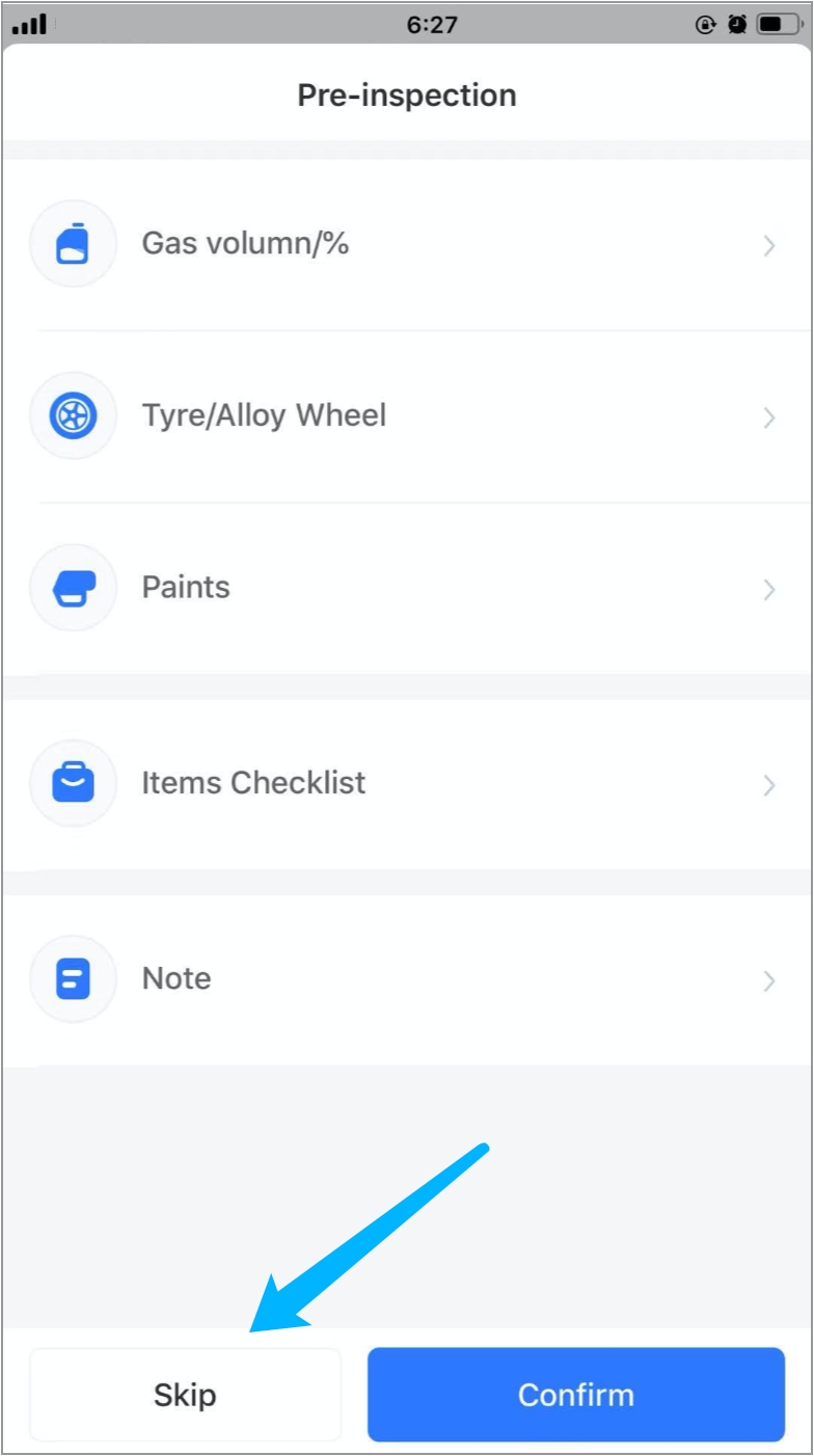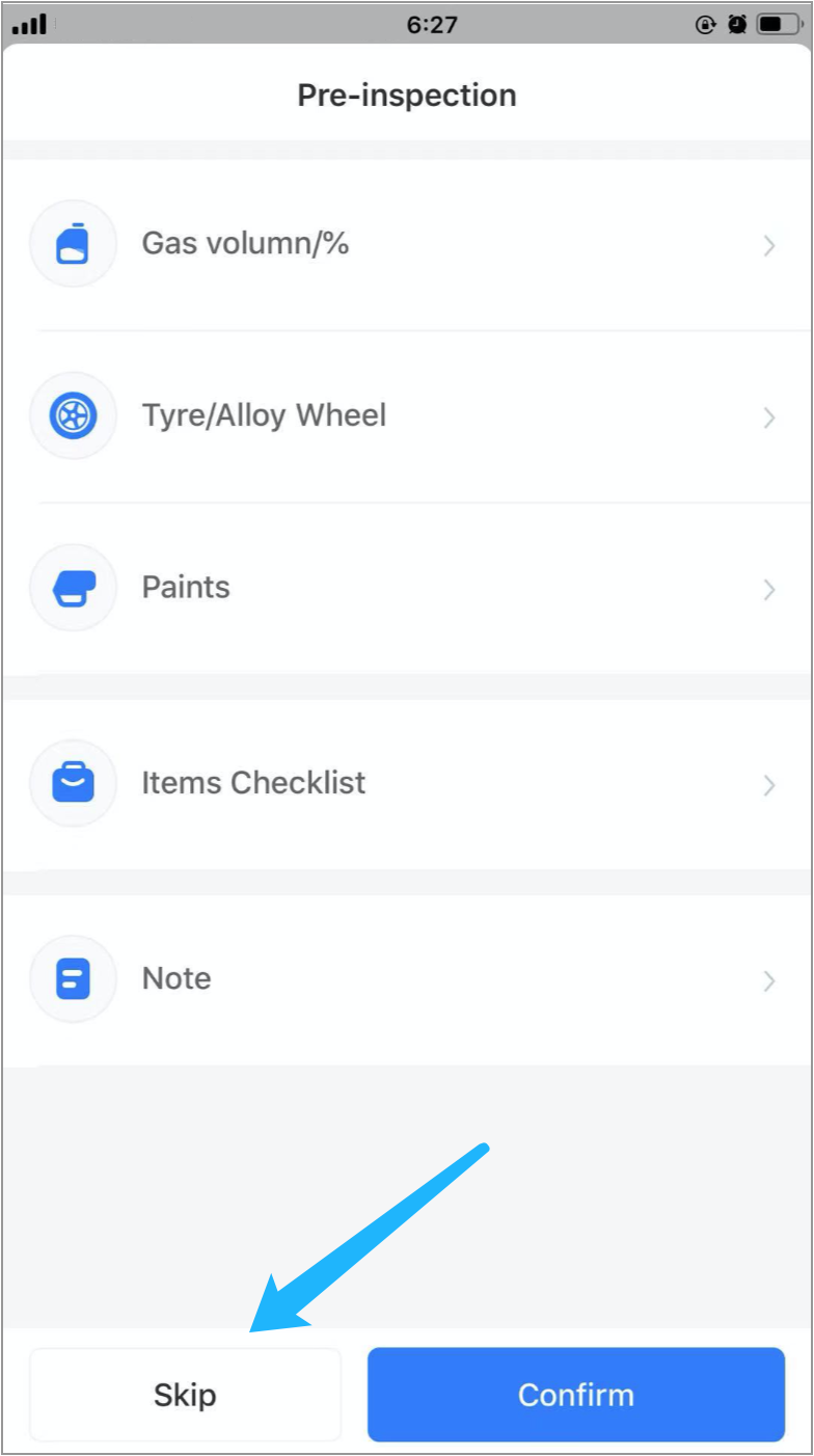 The technician could inputs "Pre-inspection" and clicks "Confirm", or skip it.