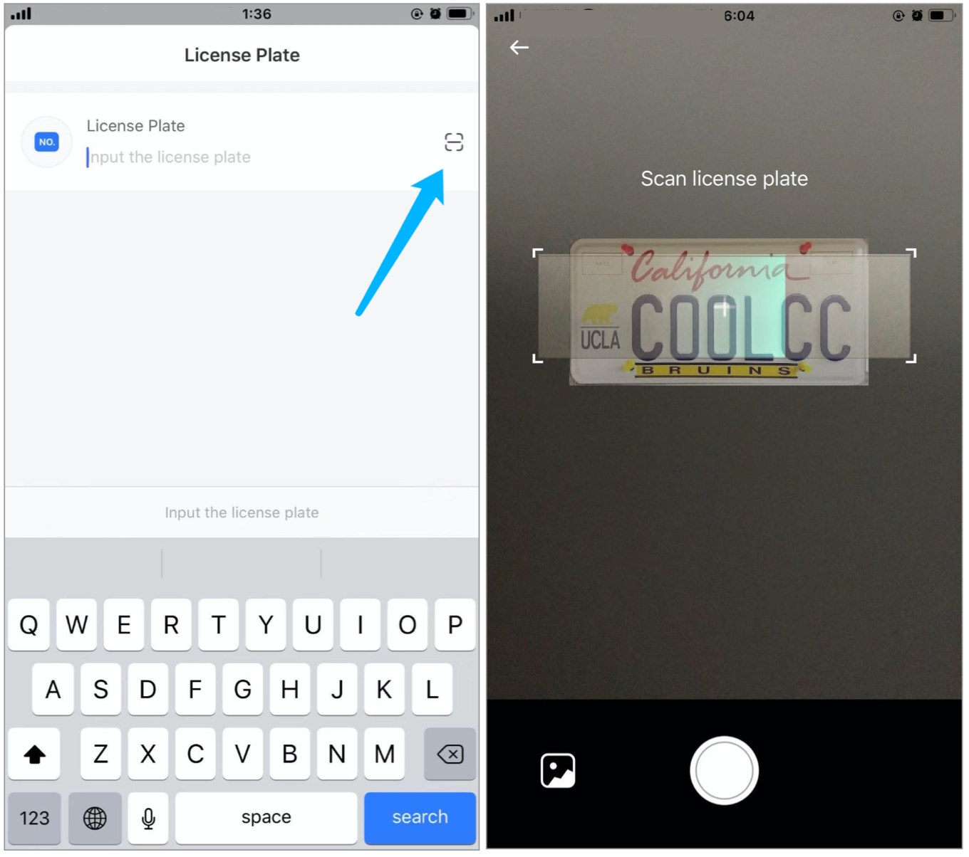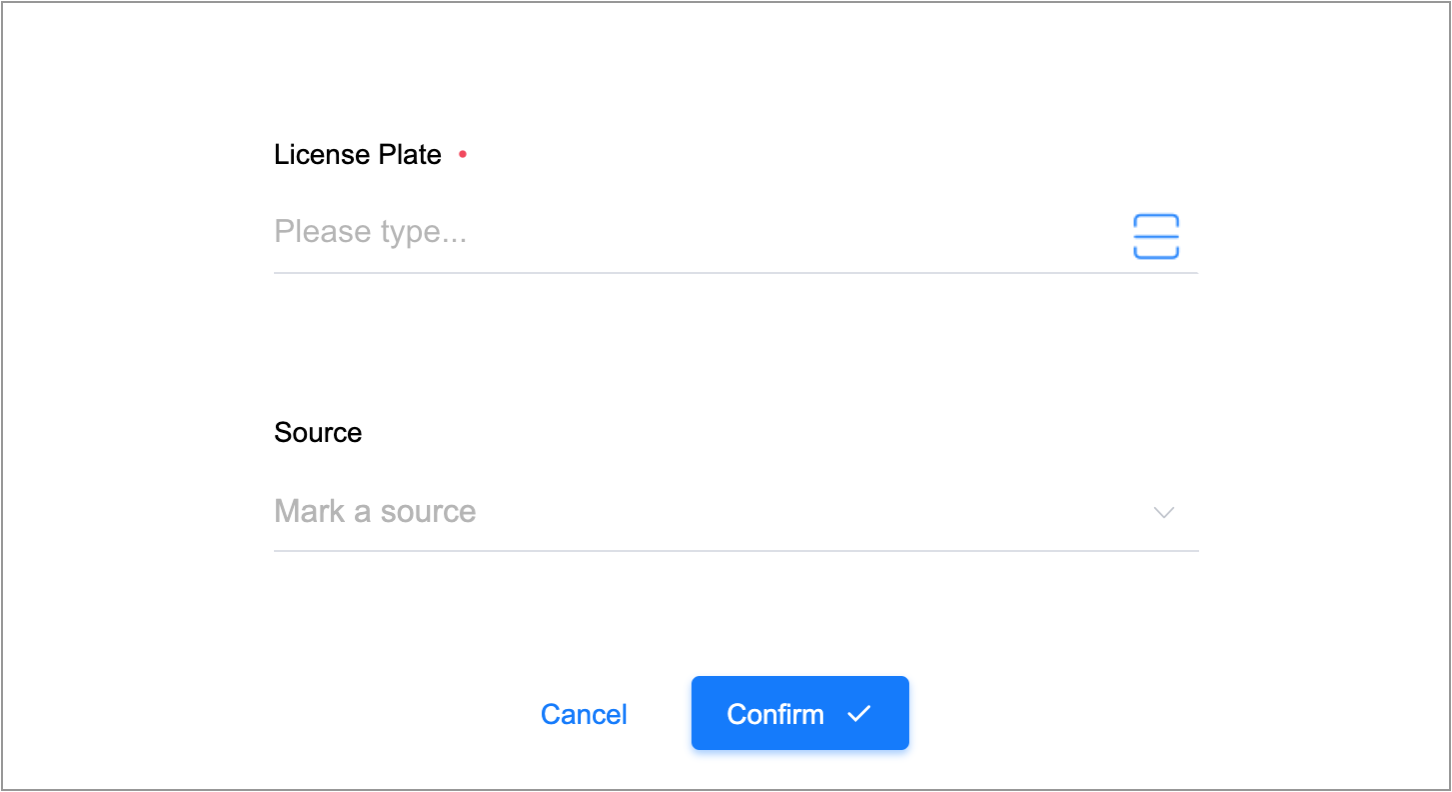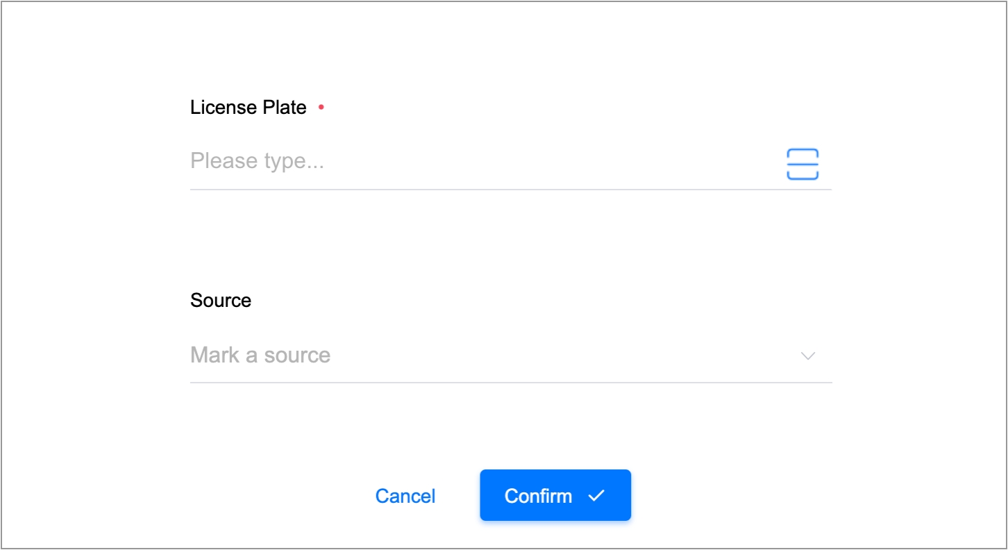The technician inputs the license plate (or scan license plate) in the pop-up window.
