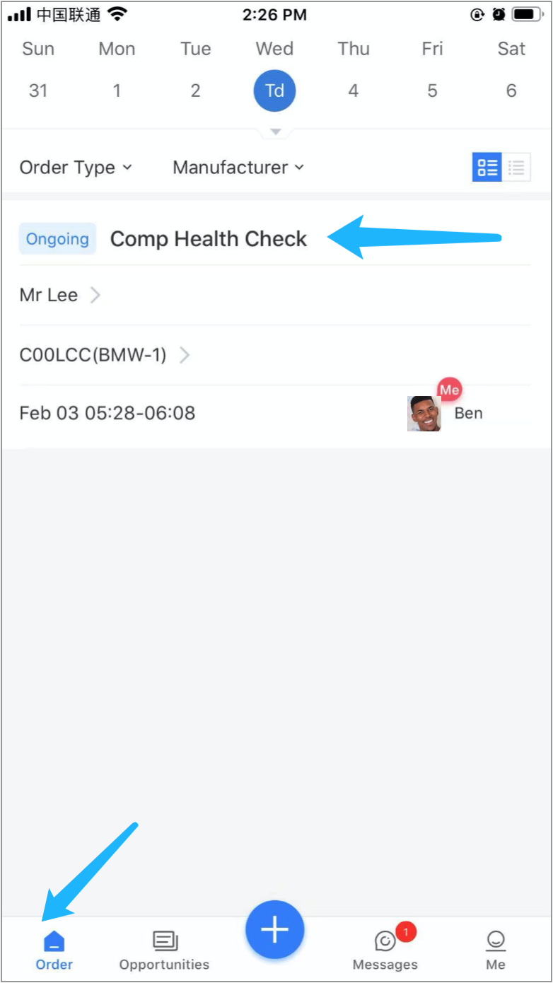 The technician logs in Intelligent Technician, Clicks "Order", then clicks "Comp Health Check", enters the Health Check page.