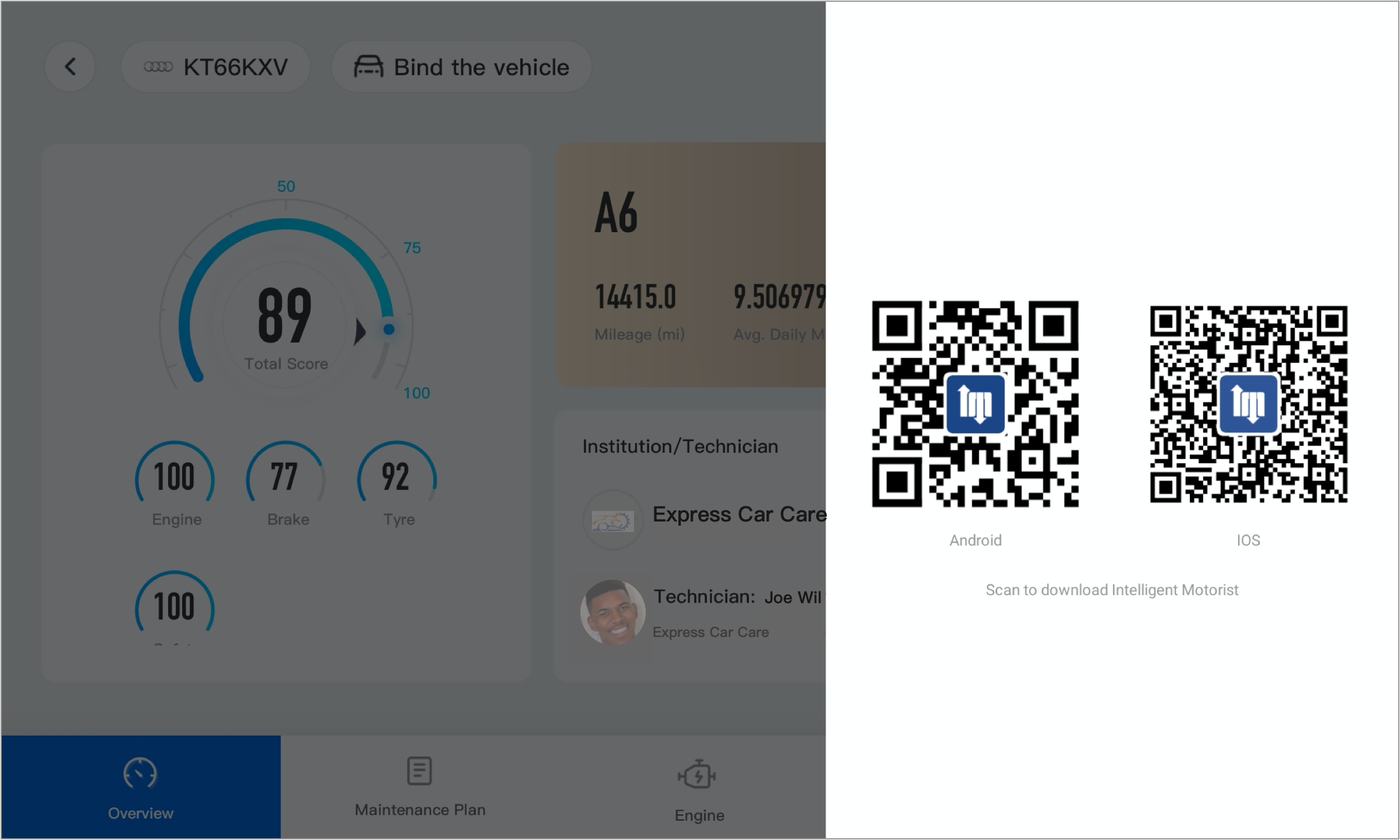 Intelligent Motorist is an application for vehicle owners to view Health Check reports, maintenance plans and book appointments. Generally speaking, the technicians or staff can guide car owners to download Intelligent Motorist and complete the vehicle binding when they use Intelligent Hub to display the Health Check report.