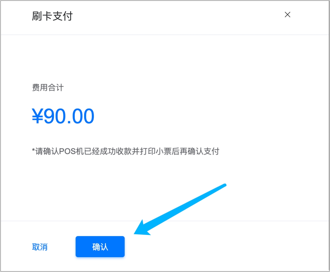 技师在弹窗中确认信息,点击客户选择的支付方式。