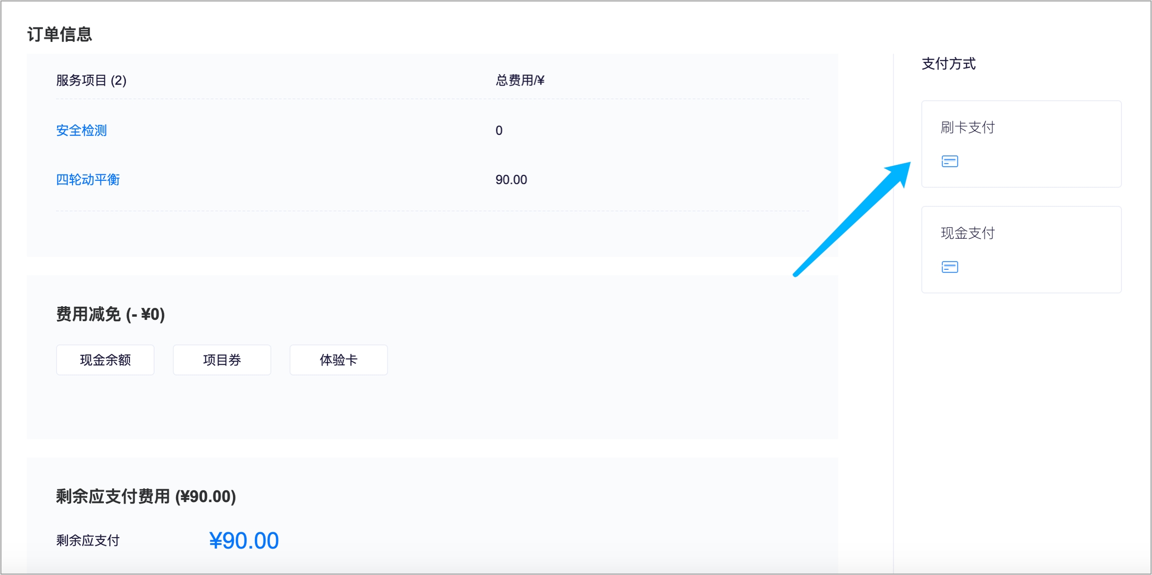 车主在付款时,门店技师用Intelligent Technician(技师端)完成该订单的支付操作。