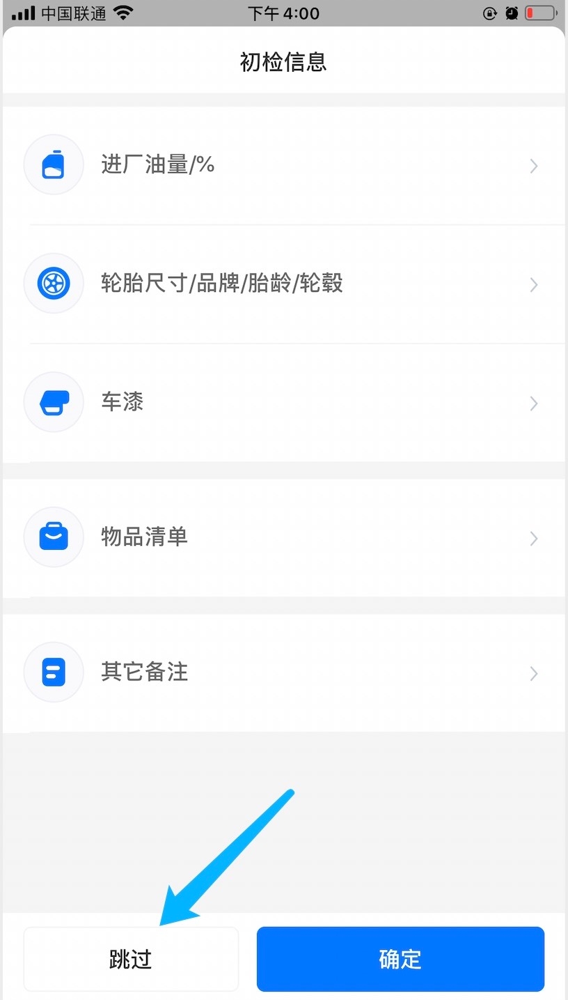 技师可选择在弹窗中输入初检信息,或直接点击“跳过”。
