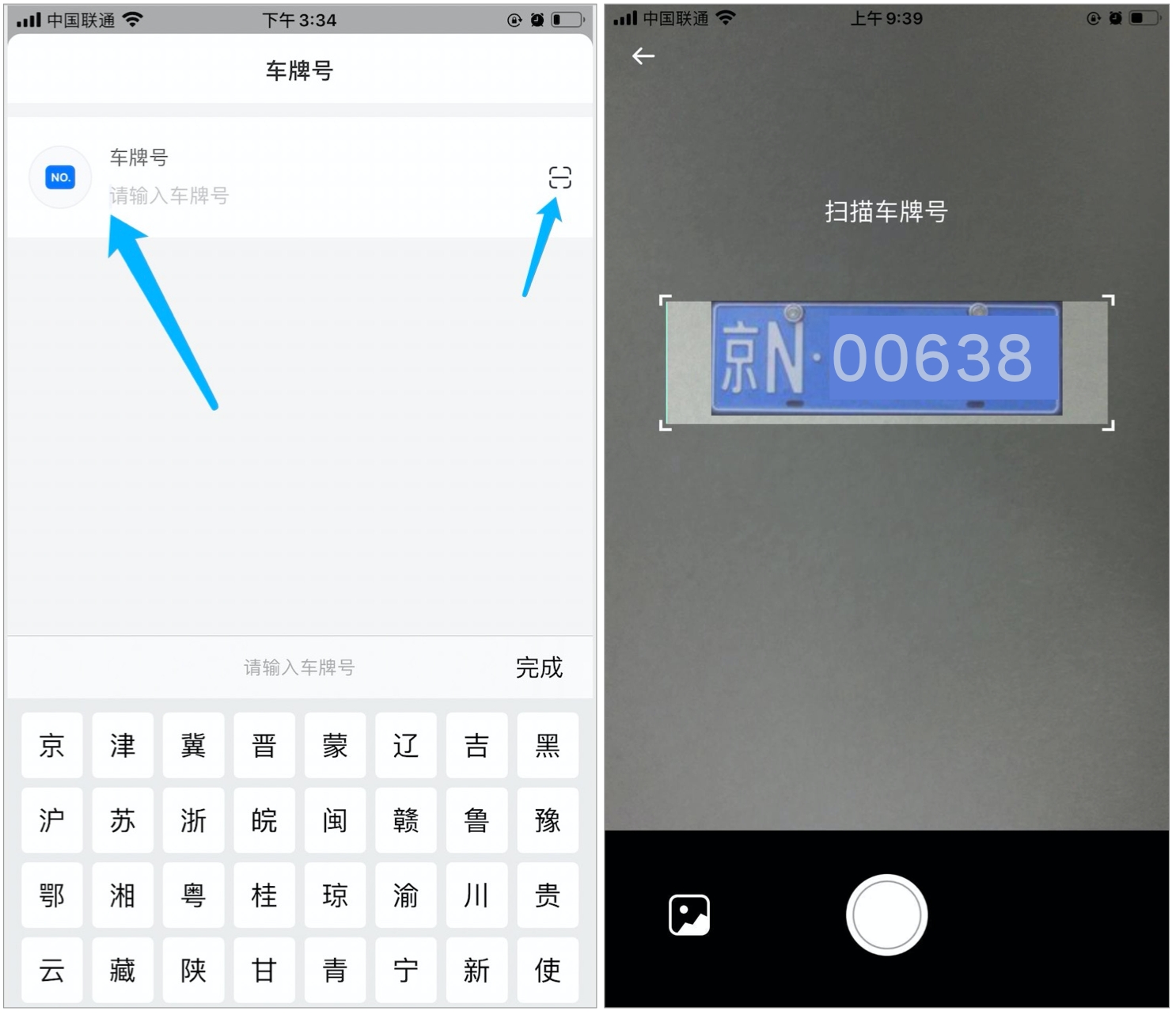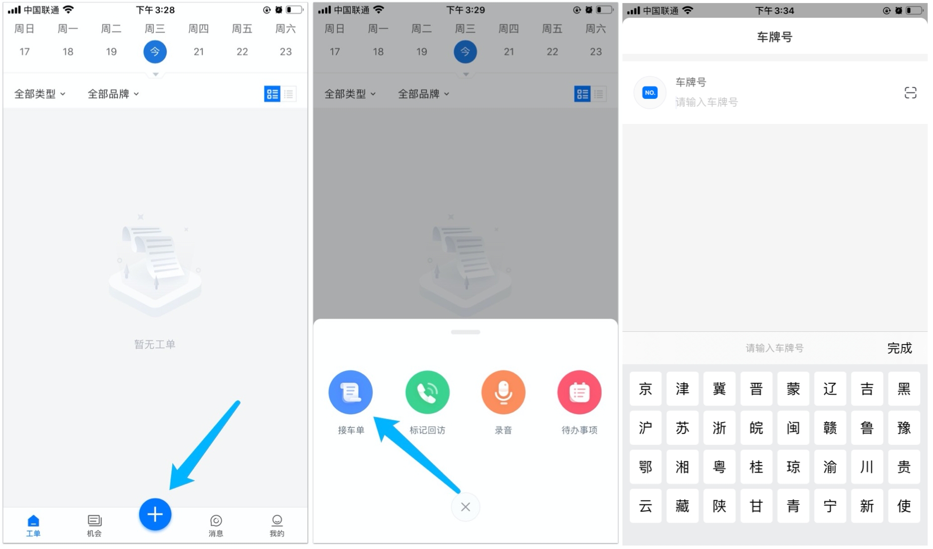 技师在弹窗中输入车牌号(或用相机扫描车牌)。
