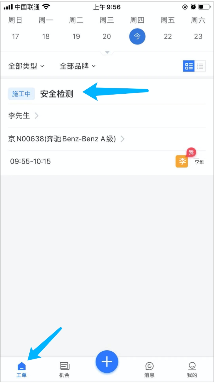技师打开Intelligent Technician(技师端),点击“工单”,点击“安全检测”,进入检测页面。