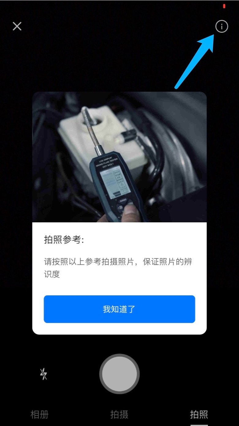 技师在拍照时,打开相机后,点击右上角标志,可查看拍照参考图片。
