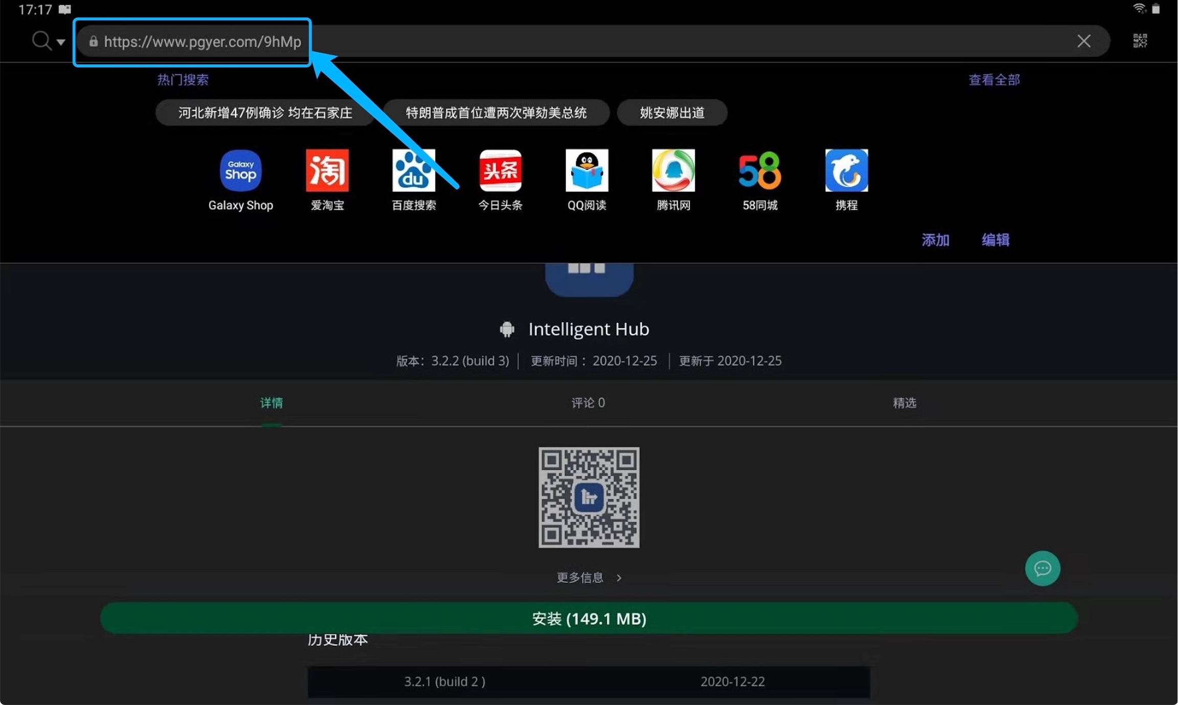 打开浏览器,地址栏输入: https://www.pgyer.com/9hMp