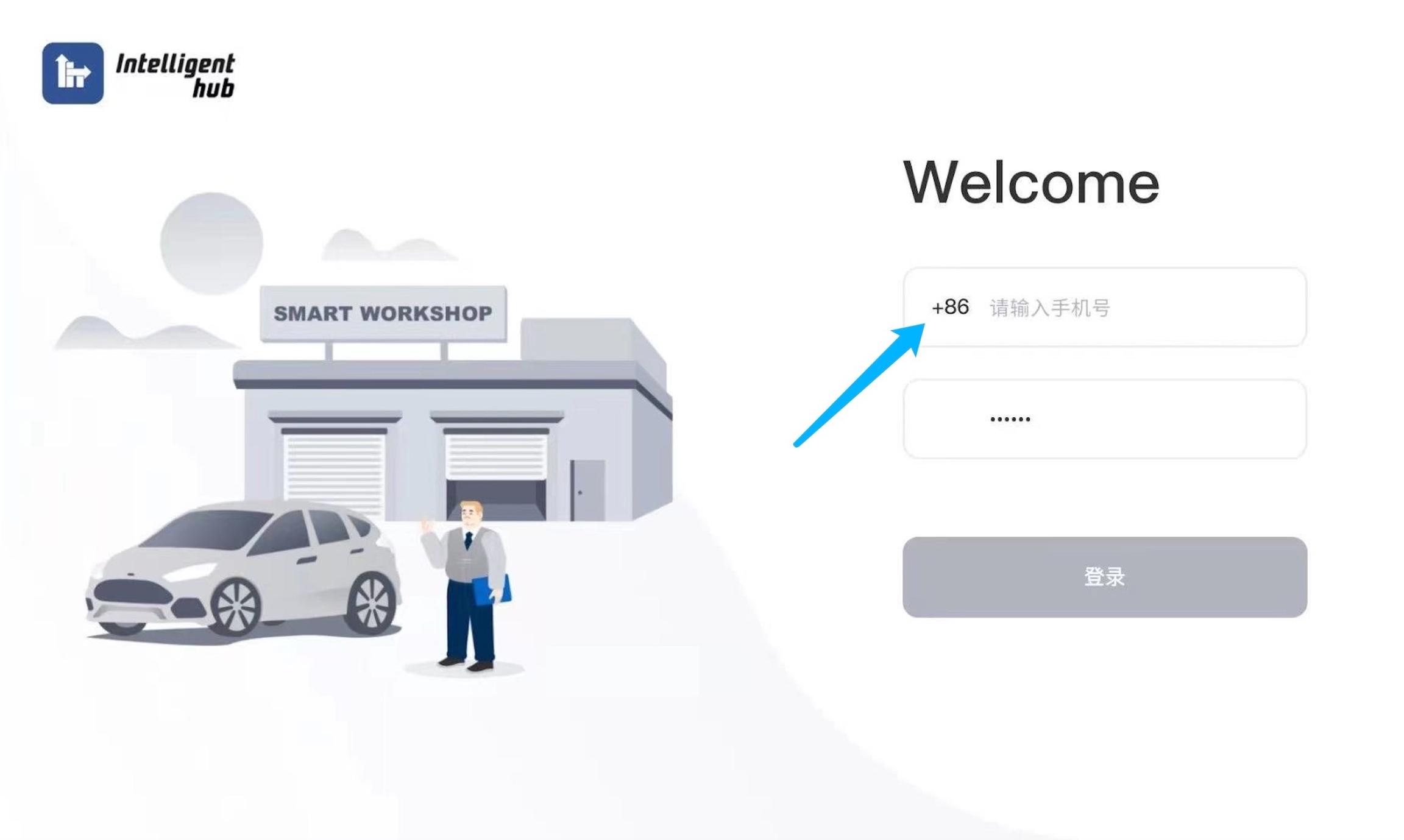 技师打开Intelligent Hub(大屏端),输入技师账号和密码,点击“登录“。
