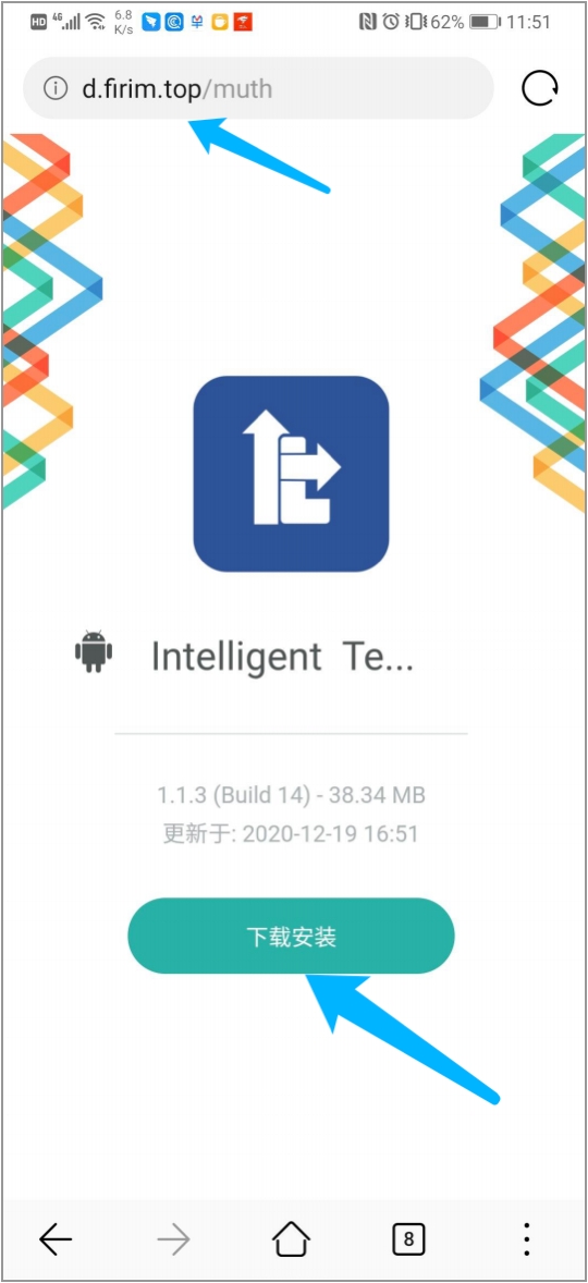 技师打开浏览器,在地址栏输入: d.firim.top/muth,点击“下载安装”。